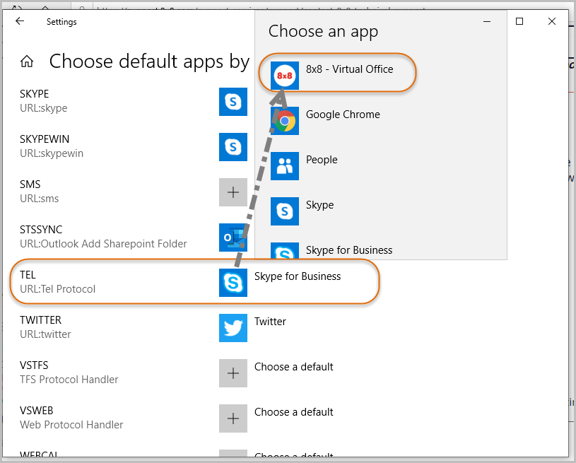Step 1: On a reference machine, configure the default app for TEL: manually (e.g., Skype, Teams, Zoom Phone).