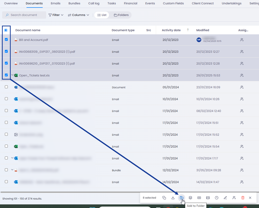 Or click the Add to folder button for all or multiple documents at the bottom pane toolbar.