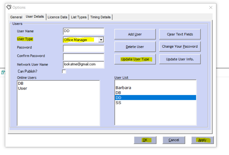 Adding Users 1. Click File on the top left pane. 2. Click Settings. 3. Go to the User Details tab. 4. Enter the details of the new user including their name, user type, password, and network username. Tick the Can publish box to allow the new user to ...