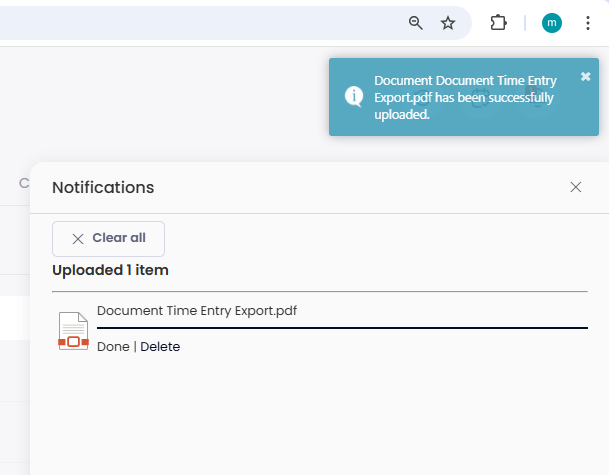 Documents successfully uploaded will now show up only briefly and then disappear, to not clog up your notifications list. Only failed document uploads will stay in the notifications section.