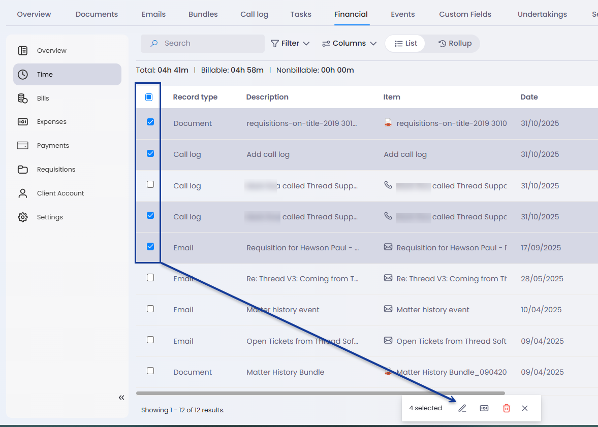 Edit multiple time records at once to update rate and time type in Matter - Financial page or Time History. For more details, click here.